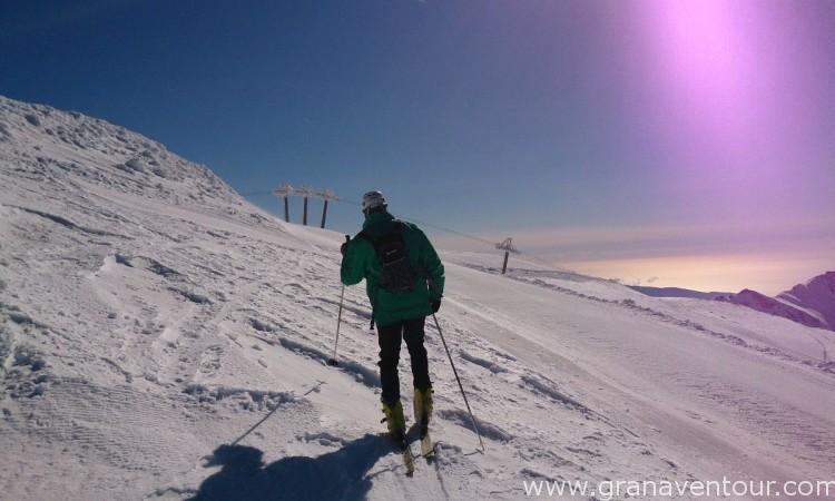 Ascensión al emblemático pico del Veleta (3395 m), en sierra nevada. Esta bonita ascensión con esqui de travesia partirá desde la hoya de la mora (2500m), aunque también tendremos la opción de iniciarla desde prado llano (2100m). Ascenderemos por el borde del parque nacional y con vistas al barranco de san juan. Es ideal para iniciarnos en el esqui de travesia, donde nos familiarizaremos con el material y veremos las técnicas básicas de progresión. Una vez arriba del Veleta, desde donde tendremos unas espectaculares vistas del mar mediterráneo y de las caras nortes de los grandes tresmiles de sierra nevada (Alcazaba-Mulhacen), tendremos diferentes opciones para descender, eligiendo la que mejor se ajuste a los participantes. Depende de las condiciones y el nivel de los participantes, bajaremos por pistas para que todo el mundo pueda disfrutar del descenso.